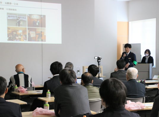 イベントでは、バラエティ番組などでも活躍する「開かずの金庫を開けろ!」でおなじみの鍵職人、ダスキンのレスキューサービス事業※1 テクニカルアドバイザーの玉置恭一が、西淀川警察の一日署長に就任。区民67人に向け防犯対策セミナーを開催し、2023年から増加傾向にある侵入窃盗の認知件数と昨今の傾向を説明するとともに、物理的侵入を防ぐ対策の重要性をお伝えしました。他にも、サービスマスター事業※2から対策のひとつとして挙げられる「防犯フィルム」の有用性を示すデモンストレーションを実施。セミナー終了後には相談ブースにてダスキンの担当者が参加者からの個別の質問に対応しました。