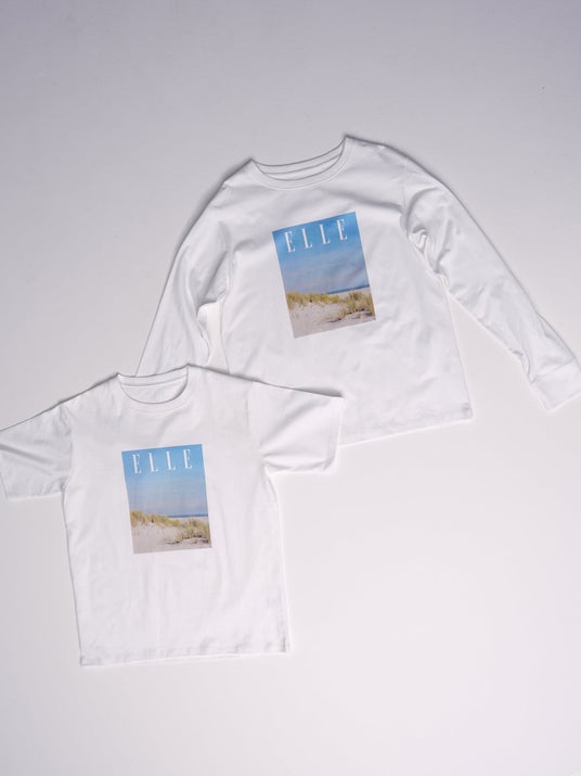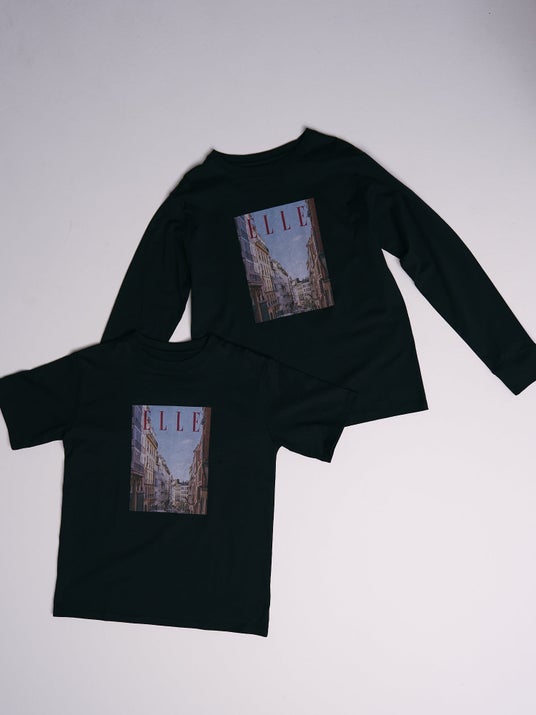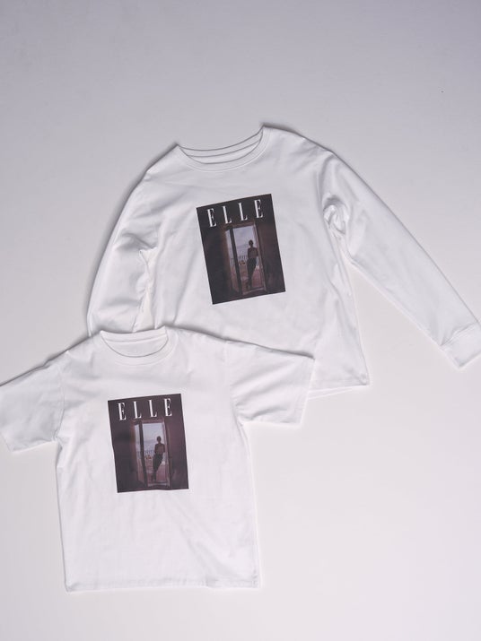 フォトプリント3種に"ELLE"のロゴをあしらったカバー風デザインのTシャツとロングスリーブTシャツの2型を展開します。素材はコットン100%で通気性・吸水性に優れ、さらっとした着心地を叶えます。UVカット機能も備わった、夏のお出かけの味方になる一着です。