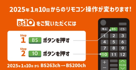 BS10(全国無料放送の新しいBSテレビ局)※公式アプリでの同時配信はございません。BS放送でお楽しみください。