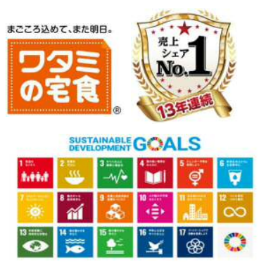 「ワタミの宅食」は、日替わりのお食事と“まごころ”をお届けすることで“社会を支えるインフラ”となることを目指し、事業を展開しています。お弁当・お惣菜は、お客さまと同じ地域に住む“まごころスタッフ”がお届けしています。毎日約24万食のお弁当・お惣菜をお届けしており、病者・高齢者食宅配市場「売上シェア13年連続 No.1」※(2010年~2022年)を達成しています。2020年3月には、業界として初めて、自社弁当容器を回収し、新たな容器としてリサイクルする取り組みを全国に展開するなど、SDGsの目標達成にも貢献しています。