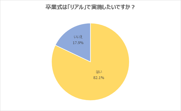 卒業式は「リアル」で開催したいと回答した学生が82.1%に上りました。「リアル」での実施を希望する回答は、昨年よりも5.3ポイント上昇しています。「一生に一度だから、リアルで体験したい」「キャンパスに通えない時期もあったからこそ、友だちと思い出に写真を撮りたい」といった声が寄せられました。
