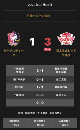 2023-08-06 一般社団法人Tリーグ ノジマTリーグ 2023-2024シーズン 公式戦 8月5日開催 九州アスティーダ vs 日本生命レッドエルフ 試合結果 Tweet ノジマTリーグ 2023-2024シーズン 公式戦 8月5日開催 九州アスティーダ vs 日本生命レッドエルフの試合結果は1-3で日本生命レッドエルフが勝利しました。 企業プレスリリース詳細へ PR TIMESトップへ 公式ツイッター Follow @Straightpress 最新情報をTwitterで受け取ろう! 公式フェイスブックページ 最新情報をFacebookで受け取ろう! 前の記事 一覧へ戻る 次の記事