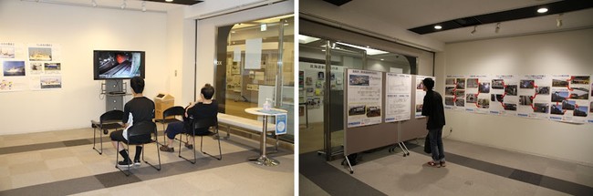 また、動画で触れられなかった船の建造に関わる、造船所や設計図等の詳細については、写真を多く使ったポスター17点を会場内に展示しました。あわせて、うしお丸の歴史や実習・調査の様子に関するポスター3点も展示し、来場者たちは興味深そうにじっくりと見ていました。