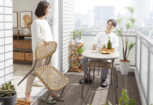 お部屋のなかにあるダイニングテーブルと椅子を、晴れた日はベランダに置いてみませんか?あたたかい太陽の光を浴びながら食事をすると、気持ちがあかるく、前向きに。休日がもっと素敵になります。ニトリから新登場した「ウチソトダイニング」のご紹介です。