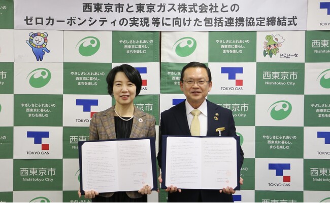 西東京市(市長:池澤 隆史)と東京ガス株式会社(社長:笹山 晋一)は、本日、西東京市における「ゼロカーボンシティの実現等に向けた包括連携協定」(以下「本協定」)を締結しました。