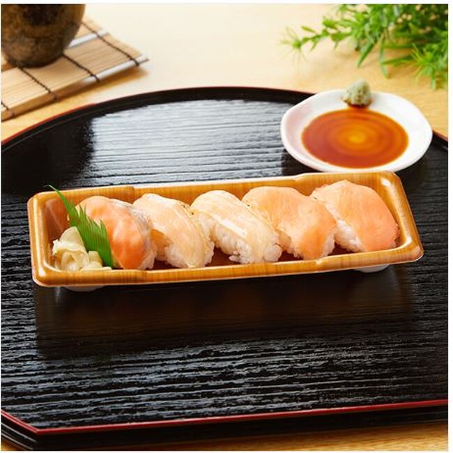 【内容】サーモンに特化した銀鮭スライスと焼ハラスの組み合わせのにぎり寿司です。