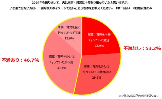 1.夫の家事・育児に「満足・不満はない」53.2%、「不満」46.7%