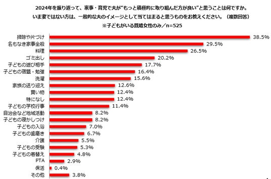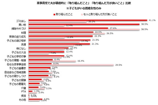 ・育児は100点満点大満足です。いつも子供を優先し寄り添った対応でありがたいです。家事は…「使ったものは元に戻す」これを徹底して頂きたい(40代:パート/アルバイト)