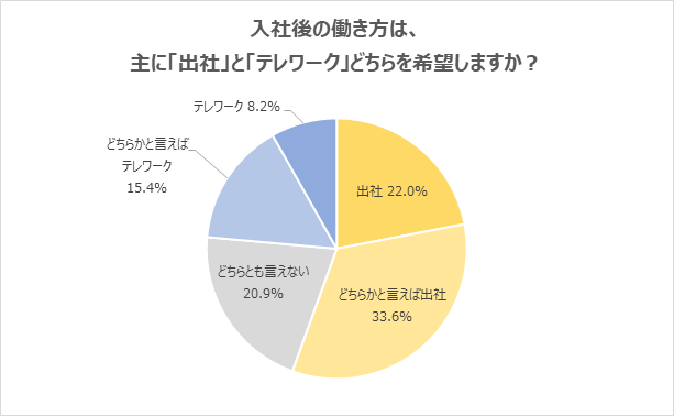 (1)入社後の働き方は「出社」を希望する新社会人が半数超。「テレワーク」希望者の2倍以上に