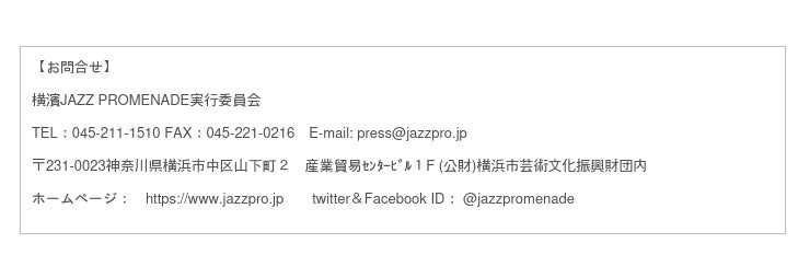 【主 催】 横濱JAZZ PROMENADE実行委員会