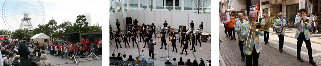 元町ショッピングストリート、イセザキ・モール1・2stでは、パレードを実施。JAZZ演奏で商店街を盛り