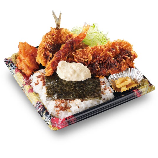 80gロース1枚/ヒレカツ1枚/チキンカツ1枚/メンチカツ1枚/海老フライ2本/から揚げ2個