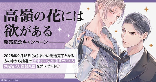 株式会社TORICO(本社:東京都千代田区、代表取締役社長:安藤拓郎)が運営するホーリンラブブックスにて、蟹宇まい先生『高嶺の花には欲がある』発売記念キャンペーンを開催いたします。