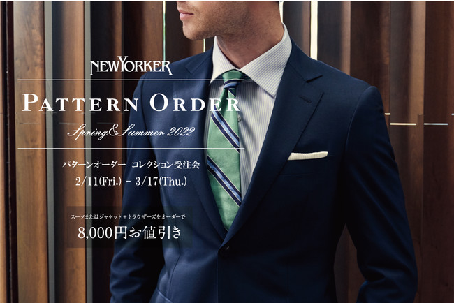 衣料事業の主力ブランドNEWYORKERを中心とした衣料服飾品の企画、製造、販売、不動産の売買、仲介、賃貸管理を行っている株式会社 ダイドーフォワード(本社:東京都千代田区/代表取締役:鍋割 宰)は、2月11日(祝・金)~3月17日(木)までニューヨーカーメンズショップにて『 パターンオーダーコレクション2022春夏受注会 』を開催いたします。