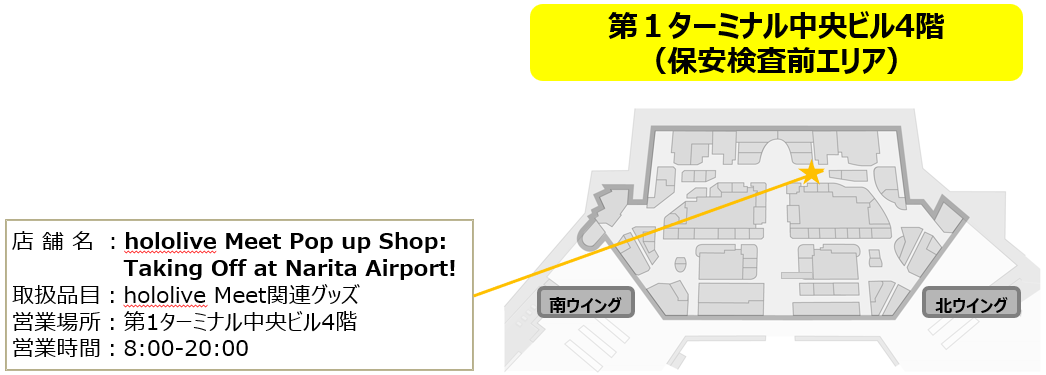 第1ターミナル中央ビル4階に、「hololive Meet Pop up Shop: Taking Off at Narita Airport!」が、2026年2月13日(金)から2026年3月9日(月)までの期間限定でオープンいたします!
