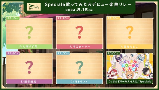 また、本楽曲と合わせてSpecialeメンバーによる歌ってみた動画の公開を、初配信後2024年8月16日(金)22:10よりリレー形式で行います。
