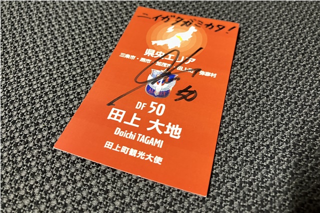 一人ひとりと言葉を交わしながら、田上選手はハイタッチで送り出していました。そして、田上選手の直筆サインが入った名刺をプレゼント。「今日がきっかけで、『また頑張ってみよう』と思ってくれたら嬉しいです」と話していた田上選手。参加いただいた皆様にとって、思い出に残る、感謝と愛情を実感する一日になってくれていれば、嬉しく思います。