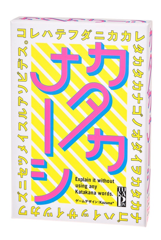 『カタカナーシ』は、「キャンペーン」「バター」といったカタカナ語のお題を、“カタカナ語は一切使わずに”説明して、他のプレイヤーに当ててもらうゲームです。カタカナ語使用禁止というシンプルながら頭を悩ますテーマで、子どもから大人まで、家族団らんの場が盛り上がるゲームです。本商品は、「ゲームマーケット大賞2017 優秀作品賞」を獲得するなどし、アナログゲーム愛好家の間で人気となっている『ボブジテン』シリーズに、新しいお題やイベントを加えて再構成した新版です。「グッド・トイ2022」(特定非営利活動法人芸術と遊び創造協会 選定)を受賞しています。