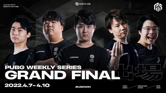 eスポーツ事業を手がける株式会社DONUTS USG(本社:東京都渋谷区、代表取締役社長:假屋勝)のプロフェッショナルeスポーツチーム「DONUTS USG」は、PUBG部門が賞金総額約2,000万円のeスポーツ大会『PUBG Weekly Series』(以下PWS)のグランドファイナルへの進出が決定いたしました。また、グランドファイナルへの進出をかけて戦ったWeekly Final Week4では、日本チームとして大会史上初となる総合1位を獲得しました。