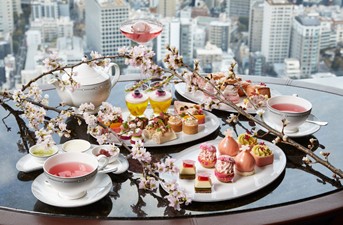 今年の「桜アフタヌーンティー」はひらひらと桜が舞う暖かい日本の春をイメージいたしました。えんどう豆や蕪、山芋や真鯛など和の食材を多く取り入れたセイボリーと、全てに桜のエッセンスを使用した見た目も可愛らしいスイーツを地上約200メートルの優雅な空間でお楽しみください。