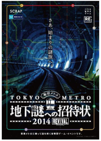 東京地下鉄株式会社(本社:東京都台東区、代表取締役社長:山村 明義、以下「東京メトロ」)は、「リアル脱出ゲーム」を企画運営する株式会社SCRAP(本社:東京都渋谷区、代表:加藤 隆生)と共催で、東京中に仕掛けられた謎を解きながらゴールを目指す回遊型の”ナゾトキ街歩きゲーム”「地下謎への招待状2014REVIVAL」を2022年12月22日(木)から2023年3月19日(日)まで開催いたします。
