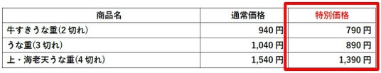今年の土用丑の日は7月19日(土)、7月31日(木)の計2日。土用丑の日を含む、7月18日(金)~7月21日(月)、7月30日(水)~8月2日(土)の期間中は、『うな重(3切れ)』、『牛すきうな重(2切れ)』、『上・海老天うな重(4切れ)』を150円引きでご購入いただけます。ご予約はもちろん、当日のご購入も対象です。