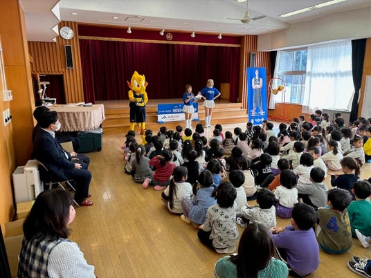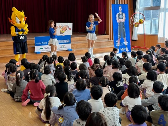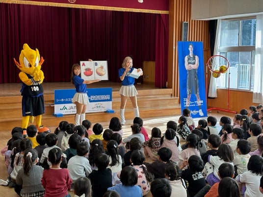 2026年1月8日(木)、シーホースくんとSuper GirlsのMIYUU、RIKOが平坂幼稚園(西尾市)を訪問し、園児の皆さんと一緒にクイズやダンスを楽しみました。