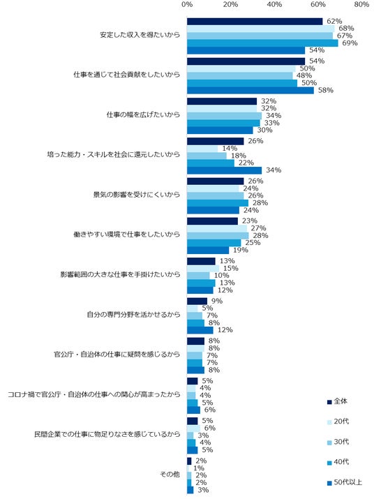 【図5】「官公庁・自治体への転職に興味がある」と回答した方に伺います。興味をもつ理由を教えてください。(複数回答可、年代別)
