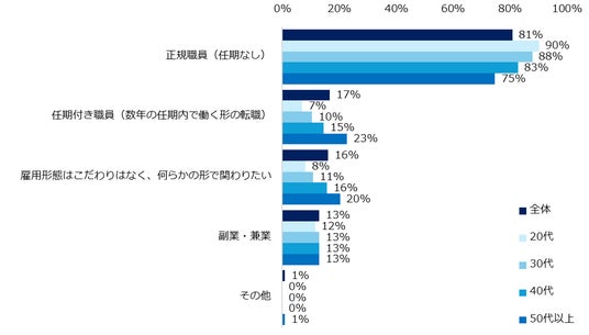 ★ 官公庁・自治体への転職で希望する雇用形態、トップは「正規職員」。40代以上は他の年代に比べ「雇用形態のこだわりはない」方が多い結果に。