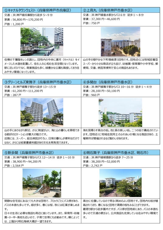 明石舞子: https://www.ur-net.go.jp/chintai/kansai/hyogo/80_1300.html