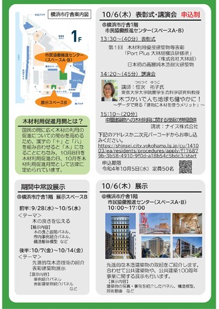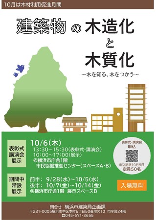 9/28(水)~10/14(金)横浜市役所1階にて木材利用促進イベントを開催します。