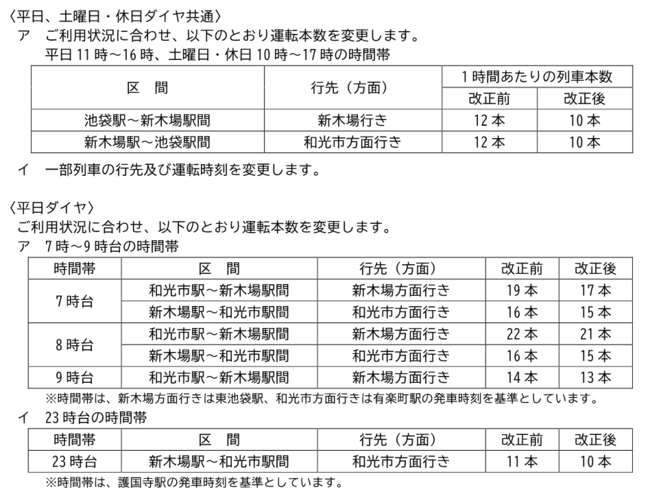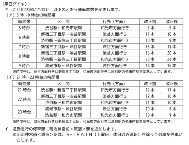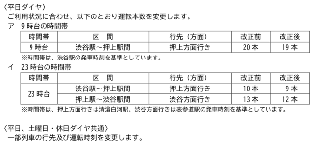 ご利用状況に合わせ、平日9時台及び23時台の運転本数を変更します。