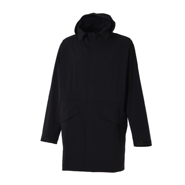 FC東京のエンブレムが入ったプレミアムコレクションコート。抜群の伸縮性、撥水性、防風性を発揮する4WAYストレッチナイロンを使用し、英国軍のミリタリーコートからインスパイアされたデザインで展開します。折り返し可能な高い襟、キャップ着用のまま被れる外付け仕様のフード、スラッシュポケット、NBロゴとユニオンジャックのウーブンラベルなど細部まで洗練されたスタイルで仕上げました。