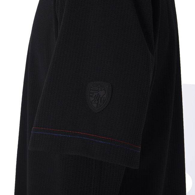 FC東京のエンブレムが入ったポロシャツ。90年代モチーフのグラフィックをジャカードでクールに表現しています。