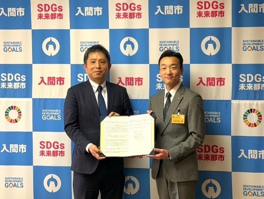 防災協定締結式(左から三井不動産 ロジスティクス本部 ロジスティクス事業部長 涌井 耕人、入間市長 杉島 理一郎氏)