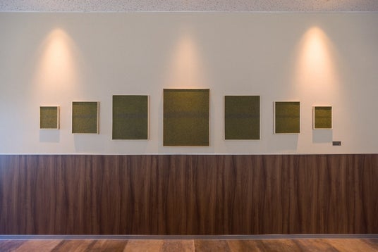 本施設では、埼玉県最大の主産地である入間市で収穫された狭山茶と、日本の伝統技術である左官を融合させたアートを導入しています。狭山茶の魅力を多くの方に知っていただくため、「狭山茶を用いたここでしかできない表現」と「自然と人との調和」をコンセプトとして、左官職人と共に1年半以上の制作期間をかけました。狭山茶の収穫過程で発生する茶葉の端材や枝などの未利用部分を左官材として活用し、自然資源を未来へ循環させるサステナビリティの視点も込めた新たな試みで、細かく砕かれた茶葉の風合いや質感、やさしい土の温もりを空間に活かしています。エントランスの入居企業名が掲示される館銘板は、茶葉を練り込んだ左官材を「磨き」の技術で仕上げ、土と金属を組み合わせたシャープでモダンな印象です。4階ラウンジでは、茶畑の緑のうねりや季節の移ろいを抽象的に描いた「風土の詩」を空間に刻むことで、訪れる人に土地の記憶と地域の誇りを伝えています。これらのアートワークを通じて、入間市や狭山茶の魅力発信と未来への継承を象徴する存在として息づき、ワーカーにとっても地元への愛着を感じられる癒しの空間となることを目指しました。