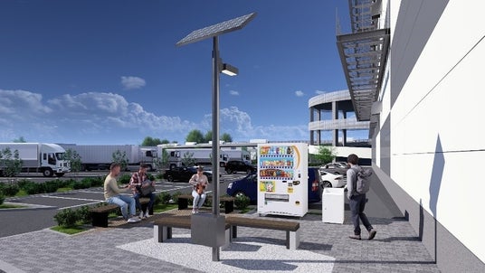 入間市と「災害時における地域防災力向上のための協定」を締結し、食料・物資等の備蓄品を保管可能な場所として、ランプウェイ下に備えた防災備蓄倉庫を入間市に提供します。また、敷地西側に隣接する「三井アウトレットパーク 入間」の従業員駐車場(約7,000平方メートル )を災害時の臨時の避難所・物資受け入れスペースとして活用します。さらに、敷地内に設置した「防災パーク」には、非常時対応型自販機や、かまどベンチ、停電時に各種デバイス等の充電に対応可能なソーラーライト・蓄電池を配置し、地域防災機能の強化に貢献します。