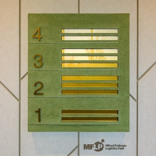 建物全体では、1階を茶系として、エントランスの壁面のデザインから「萌芽の地表面」を、施設内のルーバーや壁面の色合いから「森の小道」を表現し、上層階の緑系へとアイキャッチの色彩をグラデーションさせ、4階を「山頂」をモチーフとすることによって、登山をするかのような高揚感を演出しております。また、4階のラウンジでは、室内や付属するバルコニー・テラスから富士山の眺望を楽しむことができます。加えて、当該地の特徴でもある、敷地の約2割を占める森林をイメージして、自然素材や光などを活用したバイオフィリック・デザインを取り入れることにより、「BIOPHILIC LOGISTICS CENTER」にふさわしい、ワーカーがくつろぐことができる働きやすい空間づくりを構成しております。