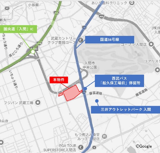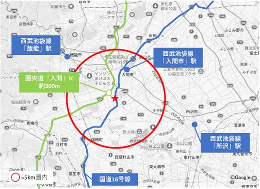 「MFLP入間I」は、中央自動車道と関越自動車道を結ぶ圏央道「入間IC」に隣接することから、全国への配送拠点として利用できる立地であることに加え、国道16号線を利用した市内配送にも優れた好立地に位置します。周辺には、三井アウトレットパーク 入間をはじめ多くの生活利便施設があり、入居企業の人材確保においても大変優位性のある立地です。