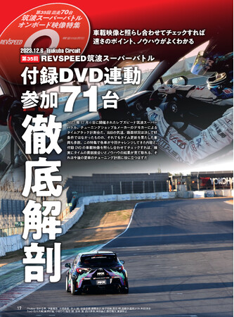 付録DVDは2層 総尺192分の特大版。『第35回 筑波スーパーバトル オンボード映像特集』『TSタカタ 谷口信輝 チューニングカーあれこれ乗りまくり』『久保凜太郎 岡山国際 攻め方ガイド』『阪口良平 オートポリス タイム短縮のための解説付きオンボード映像集』を収録しています。副音声『木下みつひろマニアックトーク』にもドラテク、セッティングのヒントが満載です。