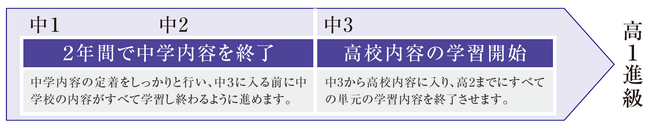 中学2年生までに中学内容を終了し、中学3年生から高校内容の学習をスタートします。中高一貫コースだからこそ、早期から大学受験に向けた対策が可能です。