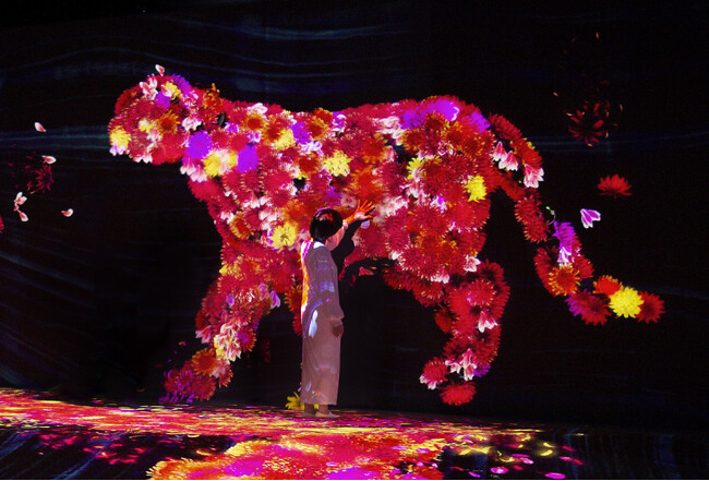 アート集団チームラボによる、福岡市の常設ミュージアム「チームラボフォレスト 福岡 - SBI証券」(以下、チームラボフォレスト)は、11月23日(木・祝)から、冬の景色となります。高低差のある立体的な世界で、冬の花々でできた動物たちが歩き回る他、複数の作品が冬の色彩に変化します。