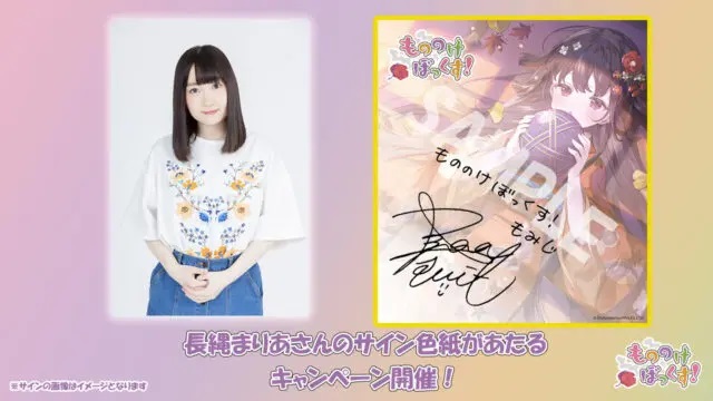 DLSiteで作品を購入しレビューを書いてくださった方の中から抽選で2名様に、長縄まりあさんのサイン色紙をプレゼント! さらに、声優グランプリのツイッター上でもフォロー&リツイートキャンペーンを開催! 声優グランプリのツイッターアカウントをフォローし、かつ当該ツイートをRTした方抽選で2名様に、長縄まりあさんのサイン色紙をプレゼント! もみじのイラストを手掛けたにもし氏の複製イラスト入りの超激レアサイン色紙です。