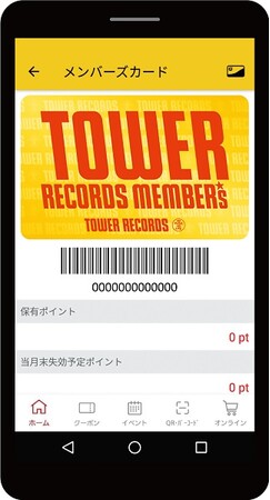 カードレス化 ⇒ タワーレコードのメンバーズカードがアプリ画面で表示可能。