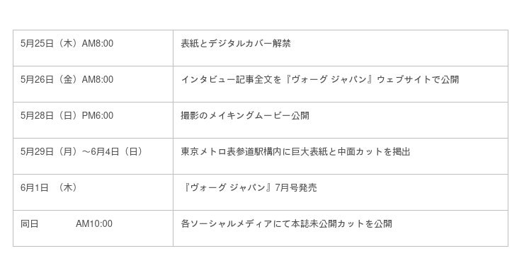 その他、これからアーティストを目指す人へのアドバイスや、新たな夢、好きなファッションテイストなどを語ったインタビューは必読です。『ヴォーグ ジャパン』2023年7月号でぜひお楽しみください。さらに、表紙ならびに中面カットを、5月29日(月)より東京メトロ表参道駅構内に特大サイズで掲出します。※駅係員へのお問い合わせはご遠慮ください。