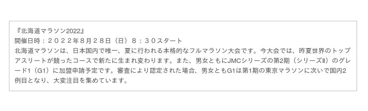 近畿日本ツーリスト株式会社(本社:東京都新宿区、社長:高浦 雅彦、以下 近畿日本ツーリスト)は、8月28日(日)に開催される北海道マラソン2022(主催:北海道マラソン2022組織委員会)の出走権付ツアーを、本日4月18日(月)12時より先着順で発売いたします。