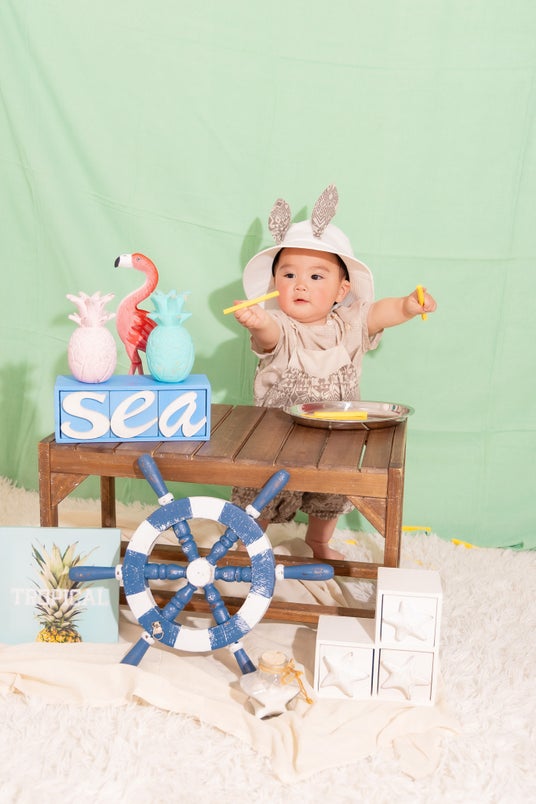 北海道にあるフォトスタジオ写真工房ぱれっと旭川店にて、ベビーフォト向けの新ビジュアルが登場。この夏にぴったり!さわやかテイストのフォトシチュエーションです。