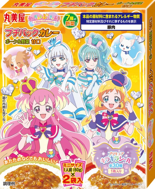 丸美屋食品工業株式会社(本社:東京都杉並区、社長:阿部豊太郎)は、女の子に大人気のテレビアニメ『わんだふるぷりきゅあ!』を採用した、「プリキュア ふりかけミニパック」「プリキュア カレー<ポーク&野菜甘口>」「プリキュア プチパックカレー<ポーク&野菜甘口>」のパッケージとシールを、「プリキュア お茶づけ」のシールを刷新し、2024年8月からリニューアル発売いたします。女の子に大人気のキャラクター「プリキュア」を採用した商品のリニューアルで市場を盛り上げます。