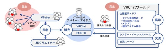 VTuberの「日ノ本マイ」「犬見るく」「まんさや」と、3Dクリエイターの「DEMITASS-KUN」「研究員ケミカル」「march-maru」「伊ノ本カズラ」「バーチャル餓狼ロロミ」が共創し、それぞれの個性や世界観を生かした3Dアイテムやアバターを制作します。これらのアイテムを「BOOTH」および「VRChat Avatar Marketplace」を通じて販売し、購入者は「VRChat」内で利用できます。DNPは、購買行動や利用実態を分析し、VTuberと3Dクリエイター双方にとって持続的な収益機会につながる可能性を検証します。