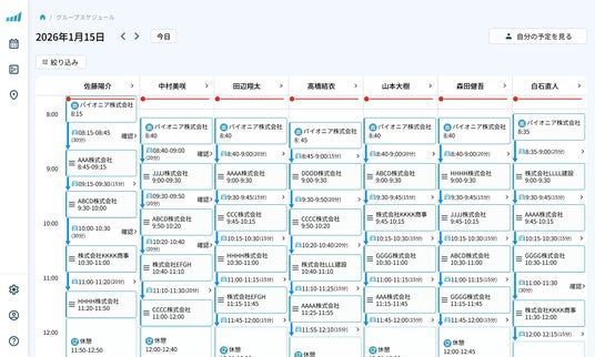 ドライバーの業務状況を一覧で把握できるスケジュール管理機能を搭載。突発的な業務が発生した際にも、管理者は対応可能なドライバーを一目で確認でき、担当者のスケジュールに直接業務を追加することができます。